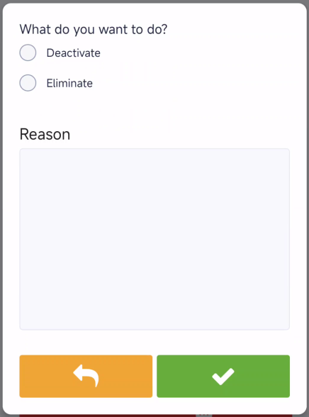 It is mandatory to enter the reason for the deactivation or elimination in the corresponding field. Make sure to detail the reason for this action accurately.
