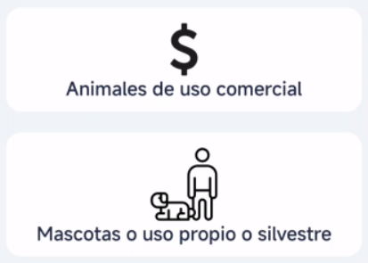 Primero, debe elegir si se trata de un animal comercial (que se cría para la venta) o un animal como mascota, para consumo propio o silvestre.
