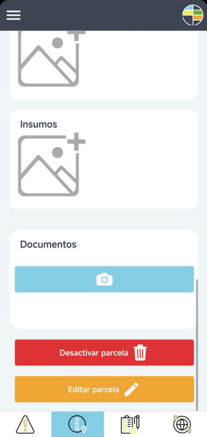 Como editar una parcela: Navega a una parcela mediante el botón del menú hamburguesa > Después desliza hacia abajo para encontrar el botón de editar la parcela. Nota Importante: Asegúrate de guardar todos los cambios mediante el botón verde después ...