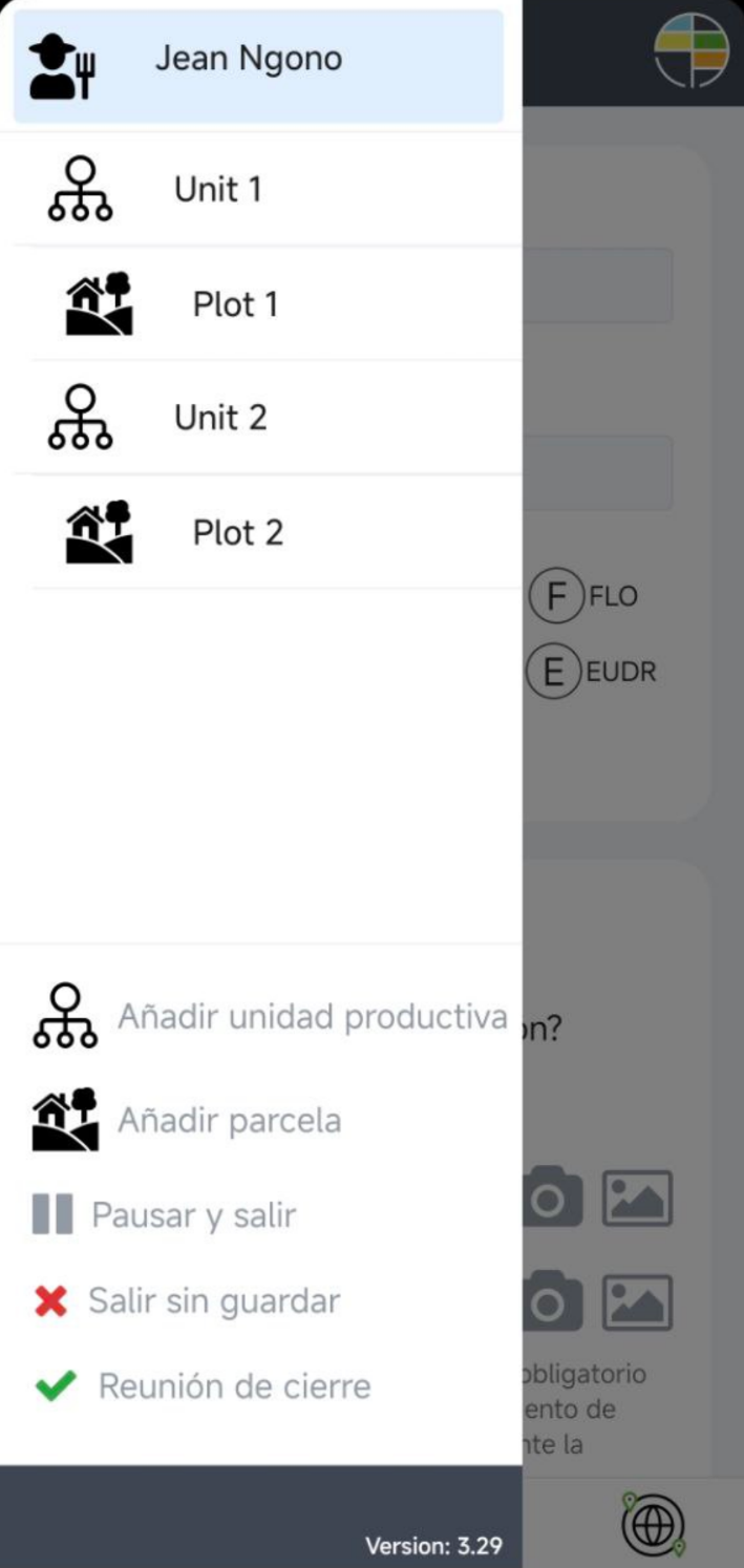 Desde el menú hamburguesa ☰ , selecciona la unidad productiva o parcela que deseas modificar o eliminar.