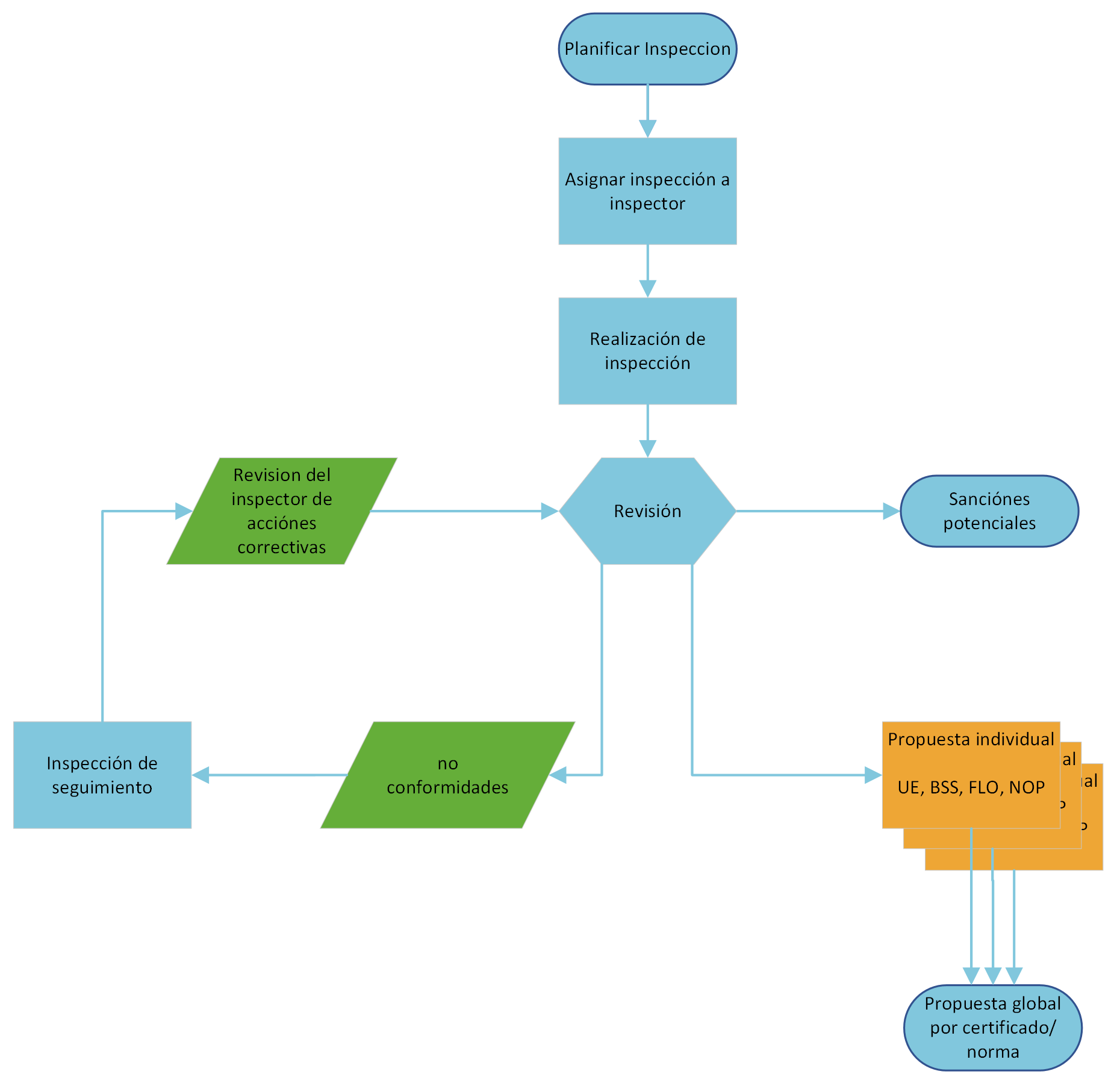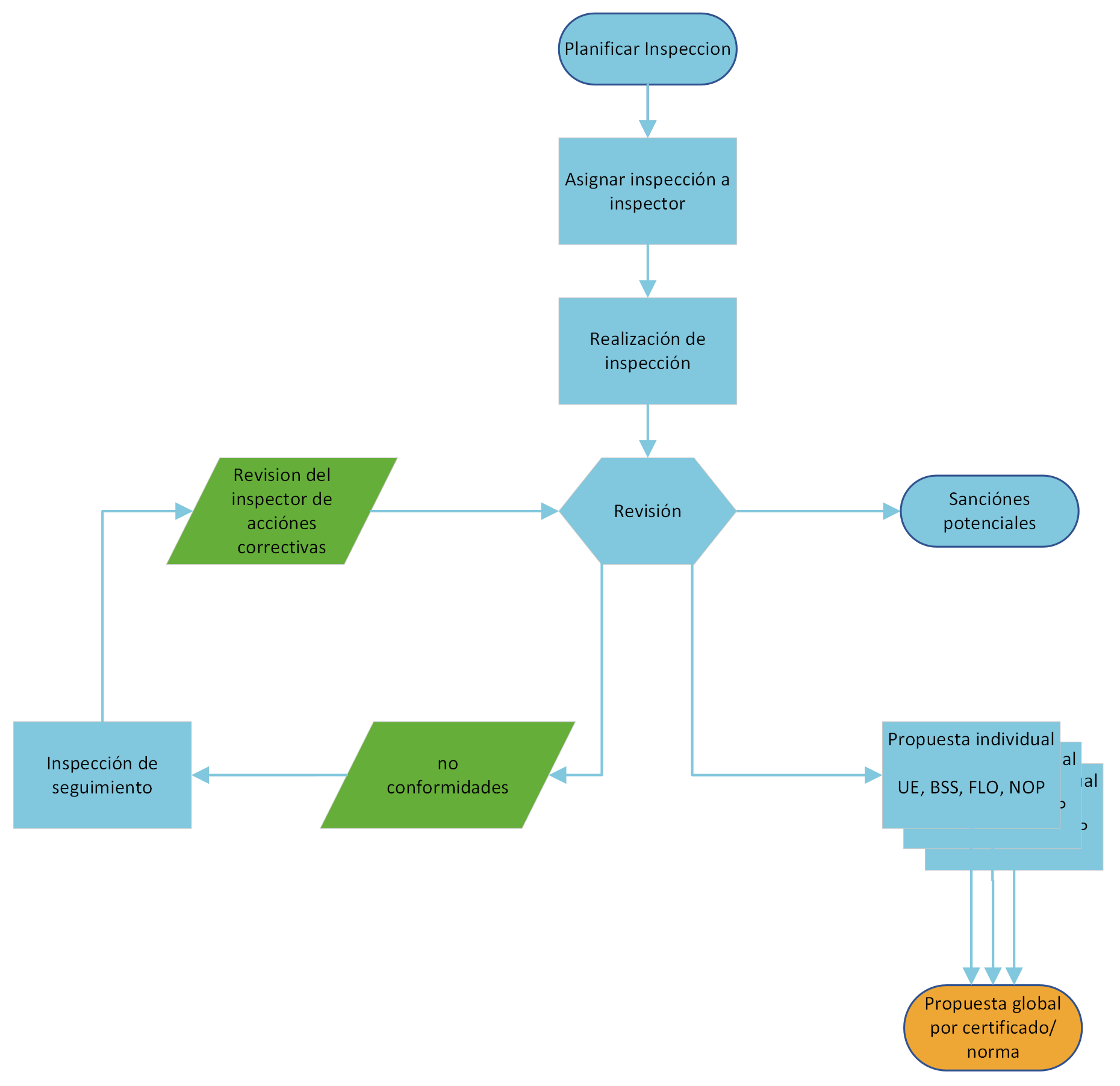 WEB: Luego de una revisión exitosa de una inspección, se procede a crear una propuesta de certificación por cada productor. En esta propuesta se propone el estado de certificación de por cada norma/certificado al que aplica el productor.