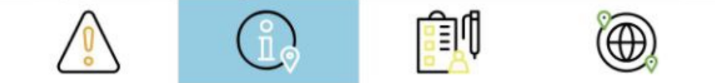 La siguiente imagen muestra la barra de navegación inferior con los 4 íconos principales, incluyendo el acceso al módulo de información: