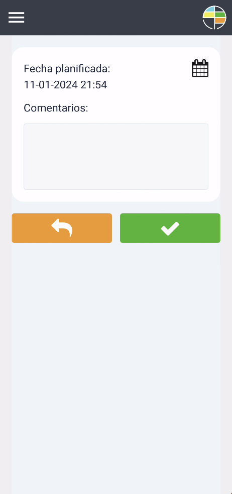 Con el botón de "Planificar fecha de inspección" se puede fijar una fecha y hora junto con un comentario, para que el inspector se pueda planificar su propia agenda.