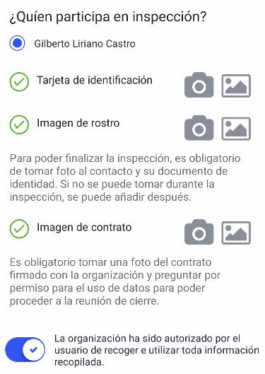 Se debe elegir con quién se realizó la inspección y tener las imágenes de