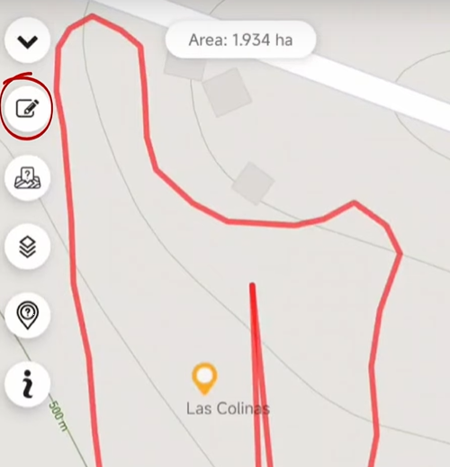 Una vez en la pantalla del mapa, entra en el modo edición (✏️). Desde aquí puedes crear o modificar polígonos utilizando las siguientes herramientas: